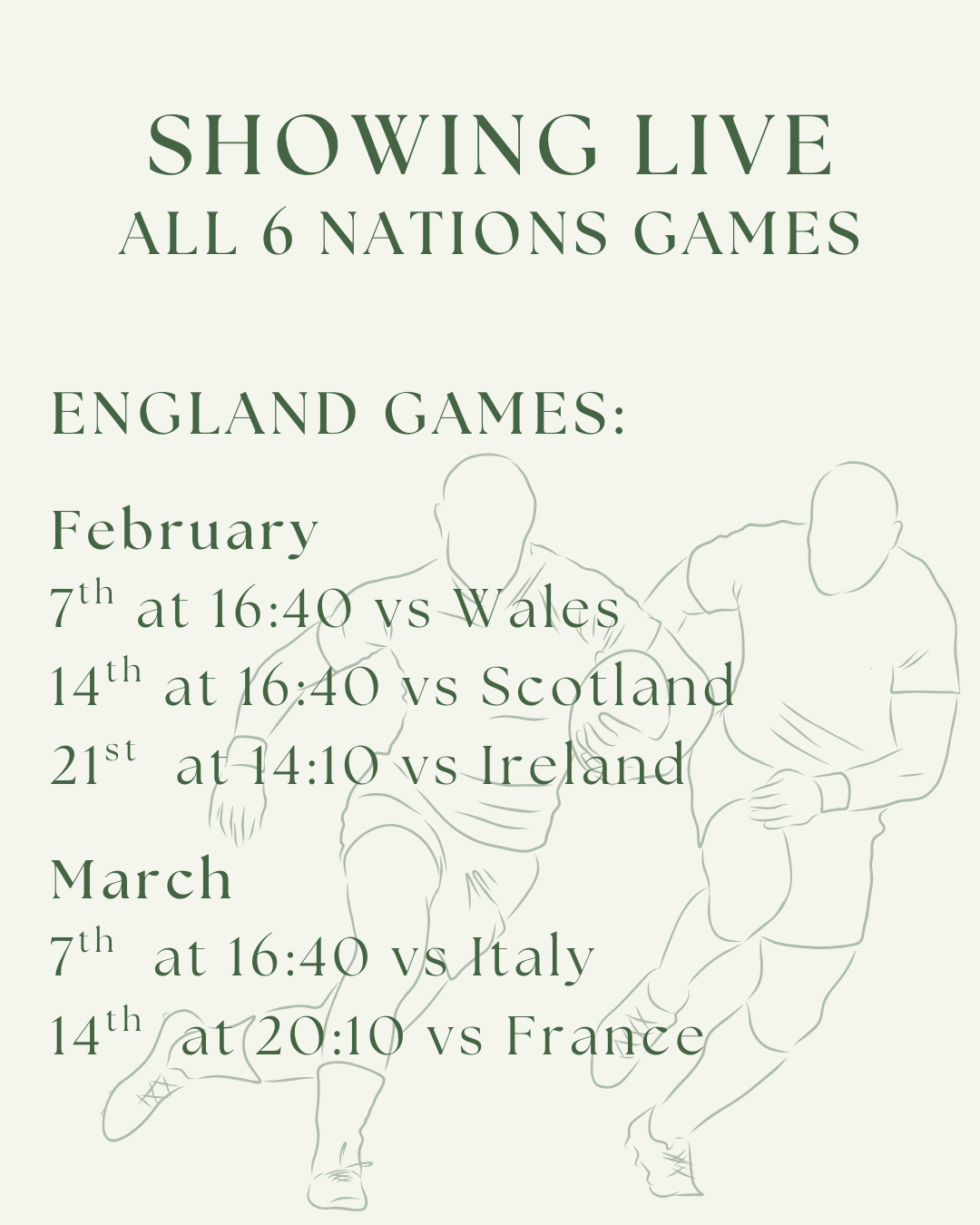 Six Nations – England vs Italy – 4:40pm